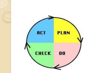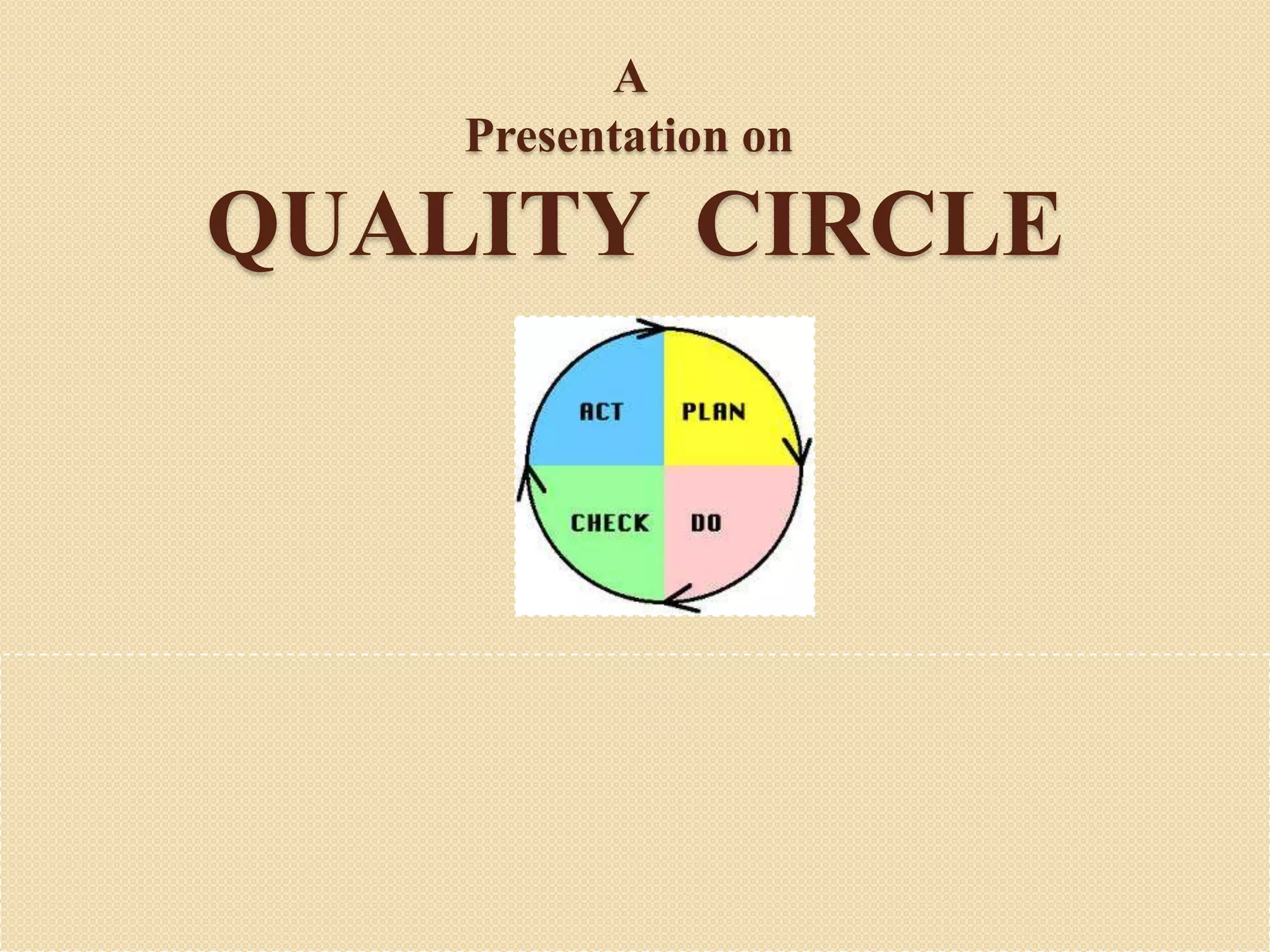 This document discusses quality circles, which are small voluntary groups of employees that meet regularly to identify and solve work-related problems. It describes how quality circles originated in Japan after World War II to improve quality and productivity. The key aspects of quality circles discussed include their definition, characteristics, objectives, basic problem-solving techniques used, and the process of operation. Charts and diagrams are also included to illustrate factors that can lead to waste and how causes are determined.