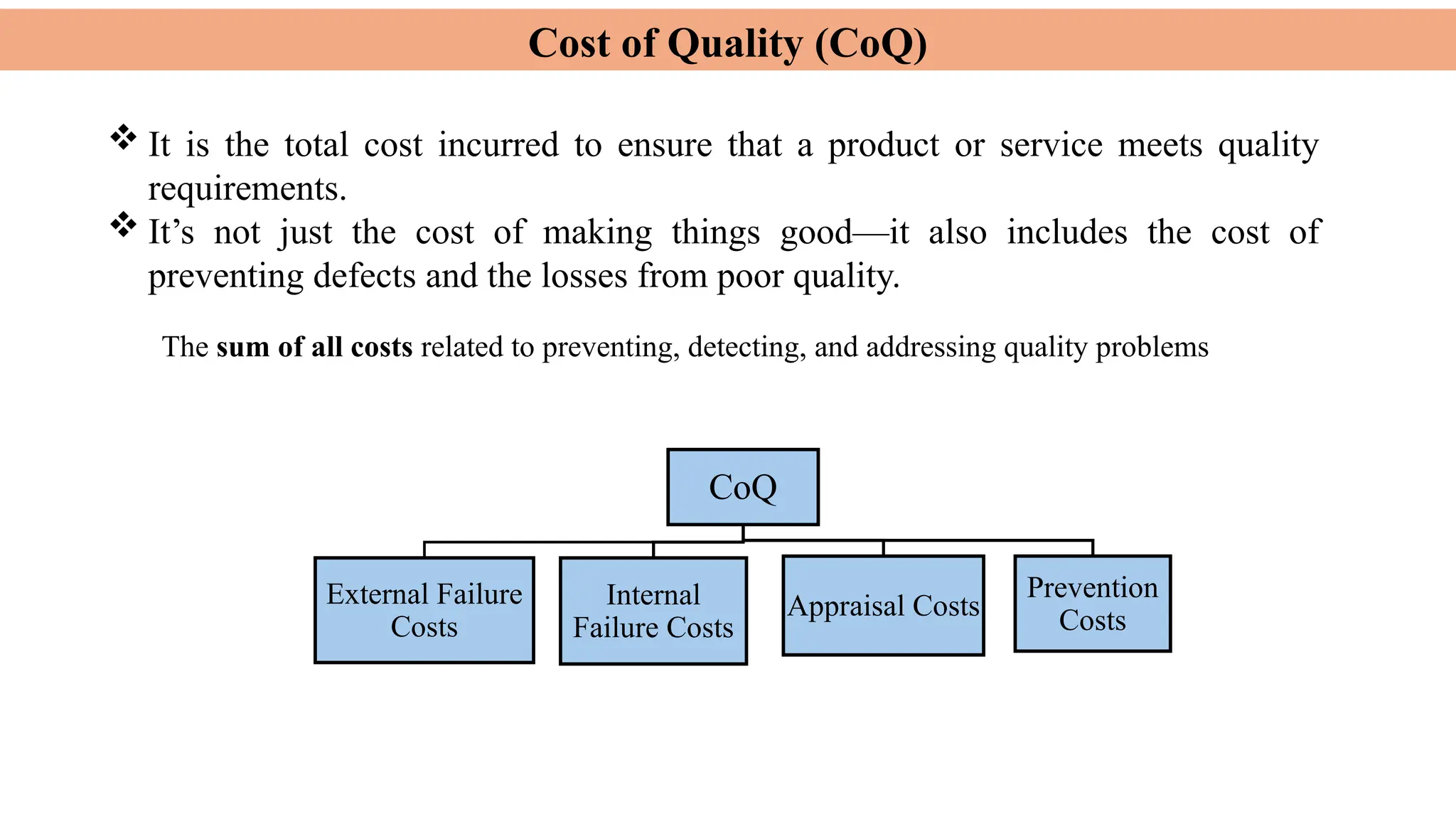 The sum of all costs related to preventing, detecting, and addressing quality problems
