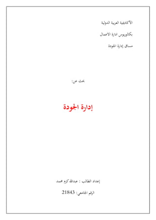 تناقش الوثيقة أهمية إدارة الجودة في المؤسسات وضرورة تحسين المنتجات والخدمات لتلبية احتياجات المستهلك. كما تؤكد على ضرورة الاعتماد على استراتيجيات مرنة ومبتكرة لضمان التنافسية في السوق. من خلال تعزيز الجودة، يمكن للمؤسسات تحسين أدائها وزيادة رضا العملاء.