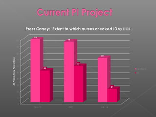 This document outlines a multidisciplinary framework for improving patient outcomes and safety. The goal is to embrace the hospital's mission while reducing risks. It describes identifying problems as process failures, exploring why processes failed, implementing improvements, and monitoring results. Examples of quality metrics that could be assessed are listed, such as antibiotic selection and falls prevention. Data on patient falls from 2010 to 2013 is provided, showing improvements were made but not sustained. Statistics are publicly reported and tied to reimbursement, so the most important thing is stellar patient outcomes.