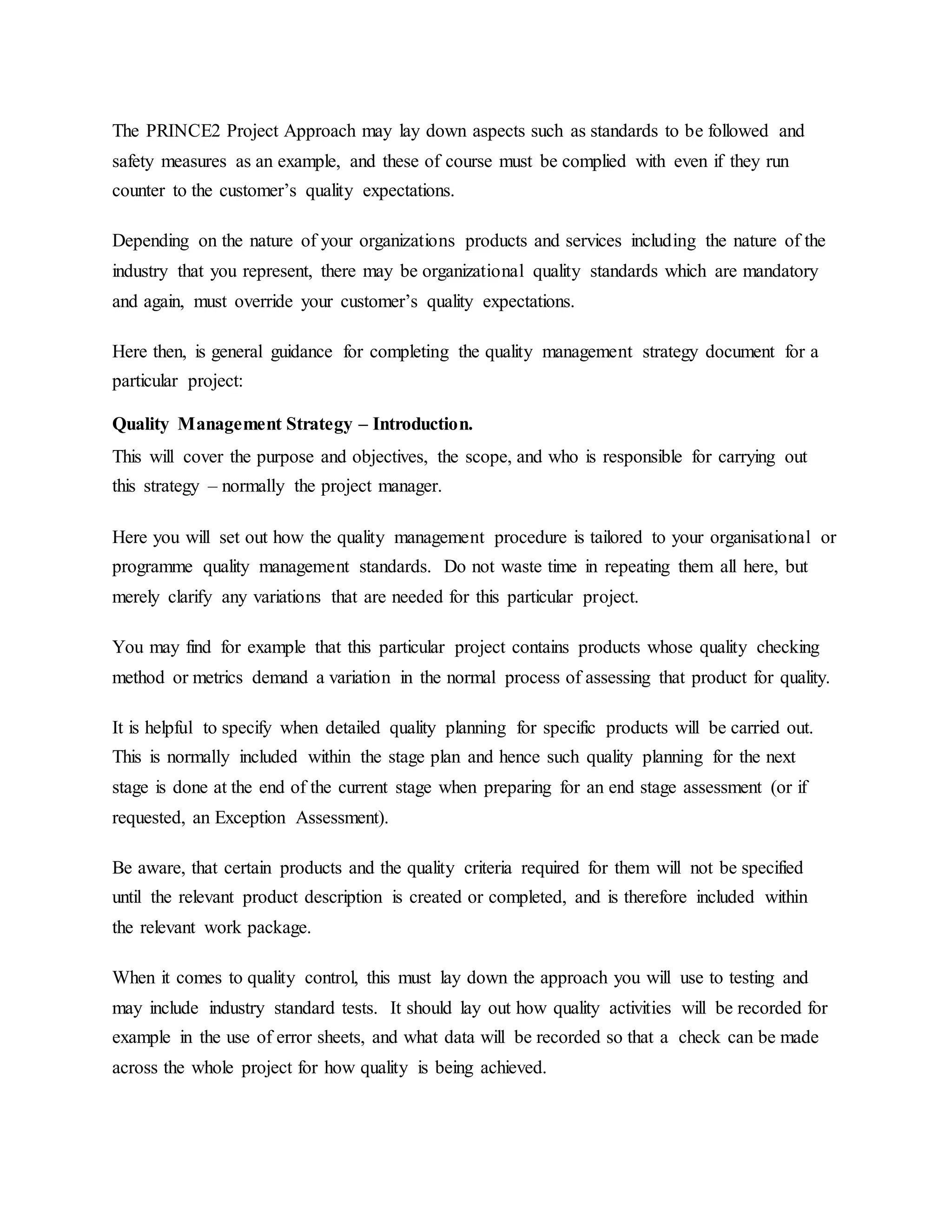 The document provides information about quality management strategy examples including common forms, tools, and strategies used. It discusses the contents of a quality management strategy document, including introducing the purpose and objectives, describing quality management tools and techniques, specifying the timing of quality activities, and defining roles and responsibilities. Specific quality management tools discussed include check sheets, control charts, Pareto charts, scatter plots, Ishikawa diagrams, histograms, and other related quality management topics.