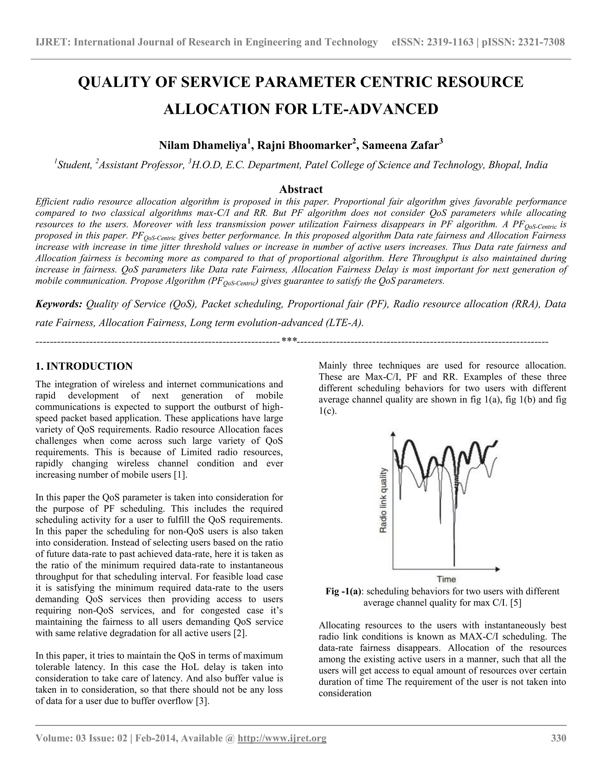 The document presents a proposed efficient radio resource allocation algorithm, named pfqos-centric, for LTE-Advanced systems, addressing challenges in meeting QoS (Quality of Service) parameters. Unlike traditional Proportional Fair (PF) algorithms, the proposed method enhances data rate and allocation fairness, particularly as the number of users increases. It emphasizes managing QoS requirements and ensuring minimal latency and effective resource allocation while maintaining throughput.