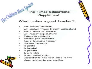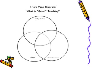 This document provides an overview of an education course titled "The Contexts of Teaching". It includes poems about the challenges of teaching, a list of course topics such as quality teaching and tips for teachers. It also summarizes the knowledge, skills, and attributes of quality teaching in Alberta which includes understanding ethical frameworks, engaging in planning, understanding subject disciplines, and creating learning environments. The document emphasizes that teaching is important work that deserves respect and aims to prepare future teachers.