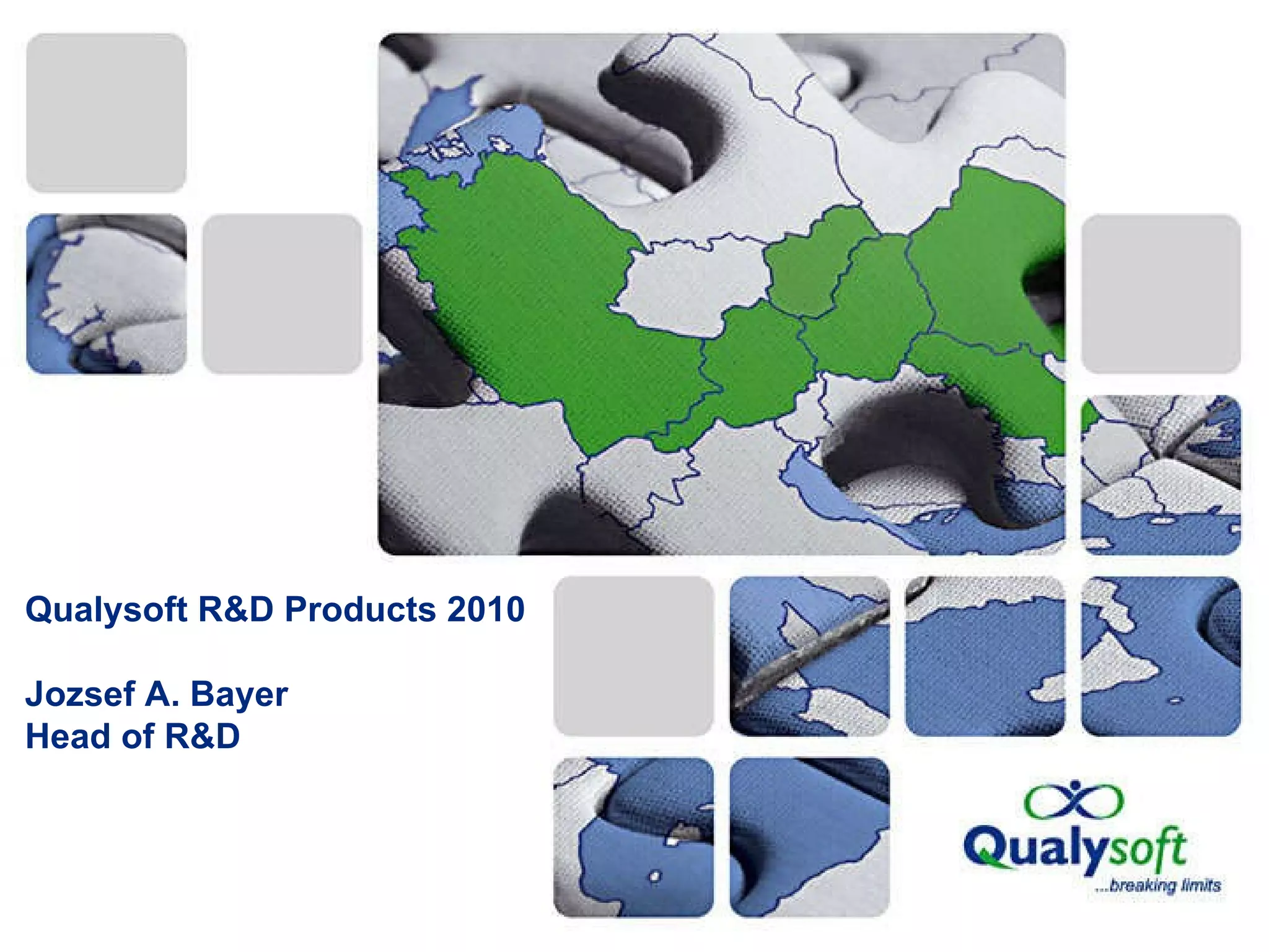 The document discusses Qualysoft's R&D products for 2010, including solutions for document personalization and generation, an enterprise document retrieval engine, and a rich content and interaction framework. It provides details on the company's document management solutions, describing how data is collected, extracted, formatted into templates to generate documents, and then output through various channels. The objectives are to find charter partners for new products who will provide feedback during development and participate in future R&D topics and support programs.