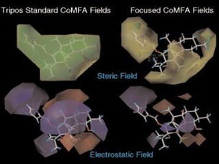 This document discusses quantitative structure-activity relationship (QSAR) modeling and 3D-QSAR techniques. It explains that QSAR aims to find consistent relationships between biological activity and molecular properties in order to predict activity of new compounds. It also describes several common 3D-QSAR software programs and techniques, including CoMFA, VolSurf, Catalyst, and DOCK, and provides examples of their applications to modeling various cytochrome P450 enzymes.