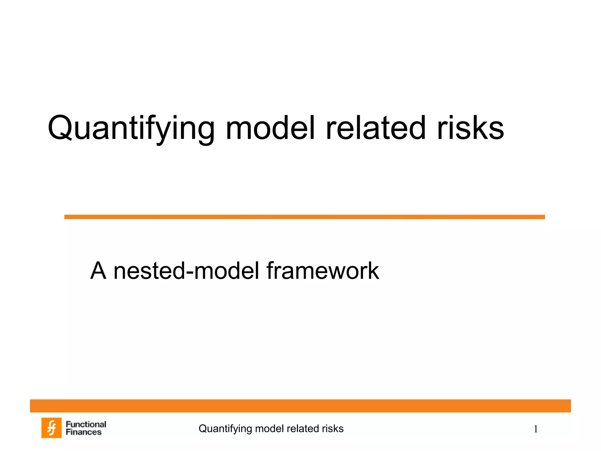 The document discusses a nested-model framework for quantifying model-related risks, focusing on various aspects such as model specification and assumption risks. It provides an example of the Black-Scholes model nested within the Heston model and describes the statistical methods for testing model validity and assumptions. The framework has advantages like flexibility and economic interpretability, but also presents drawbacks such as increasing complexity in theoretical research.