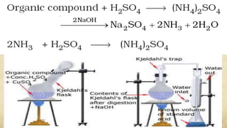 This document describes several methods for quantitatively analyzing the components of organic compounds: