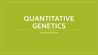 1) Quantitative genetics focuses on inheritance of quantitative traits controlled by multiple genes and influenced by the environment.