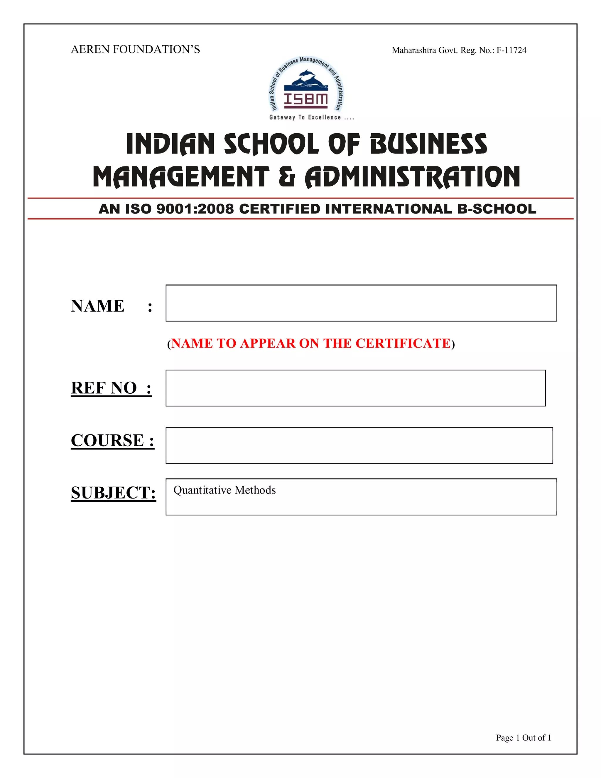 The document presents a quantitative methods exam for an international business school, comprising multiple questions on topics such as arithmetic progressions, rainfall averages, median calculations, and statistical estimates based on given data. It involves problem-solving related to averages, normal distributions, and index number construction. Each question carries equal marks and all questions are compulsory.