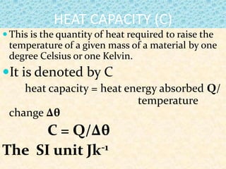 This document discusses various concepts related to heat, including: