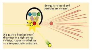 - Quantum chromodynamics describes the strong force and interaction between quarks via the exchange of gluons. Quarks have a property called "color" and gluons mediate the color force.