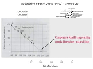 Quantum computing has several potential applications such as solving very large calculations, improving security and optimization problems, and advancing machine learning and simulation. It harnesses quantum phenomena like superposition and entanglement to store and process information using quantum bits that can be in multiple states at once. This allows quantum computers to massively parallelize computations and solve certain problems like integer factorization much faster than classical computers. However, quantum computers face challenges like decoherence that cause qubits to lose their quantum properties, limiting their size and capabilities. Researchers are working to develop different approaches to building larger, more useful quantum computers.