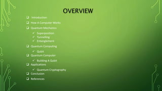 Quantum computing is a field focused on developing technology based on quantum mechanics principles, using qubits that can represent multiple states simultaneously. This technology has applications in areas such as quantum cryptography and optimizations in complex computational tasks. It has the potential to revolutionize computing capabilities and security, enabling solutions to previously unsolvable problems.