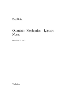 This document contains lecture notes on quantum mechanics. It introduces key concepts like the Schrodinger equation, ket vectors, operators, and Hamiltonians. The notes are divided into multiple chapters that will cover topics such as the harmonic oscillator, angular momentum, perturbation theory, and other quantum systems. References are provided to textbooks where more of the material in the notes is based on. The notes are intended to review physical and mathematical concepts needed to formulate the theory of quantum mechanics.