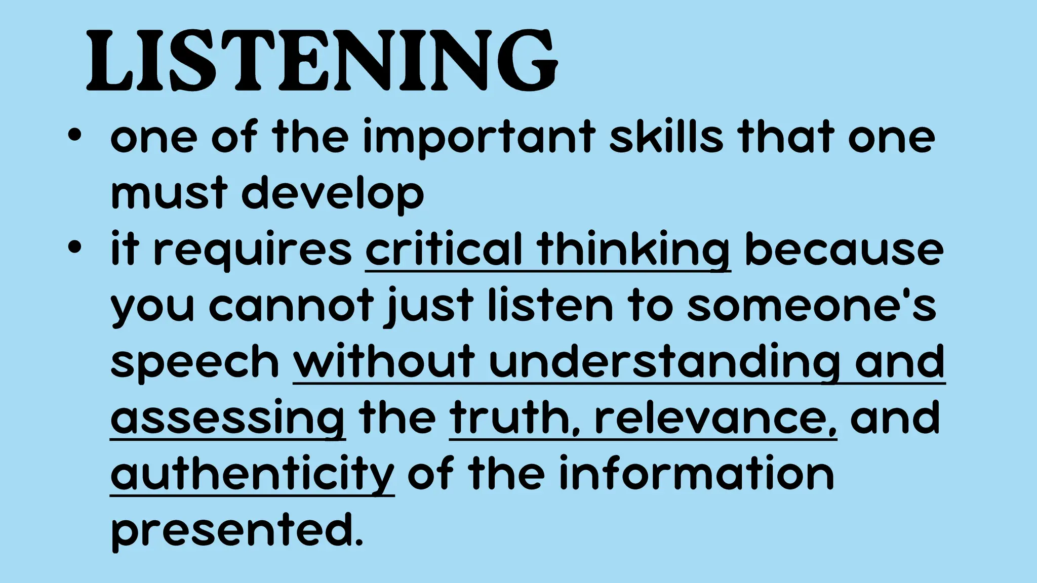 The document outlines key steps for effective listening and critical evaluation of spoken messages. It emphasizes identifying the context of the message, evaluating the speaker's credibility, and analyzing claims through research to verify truthfulness. Understanding these aspects is vital for setting expectations and determining the reliability of the information presented.