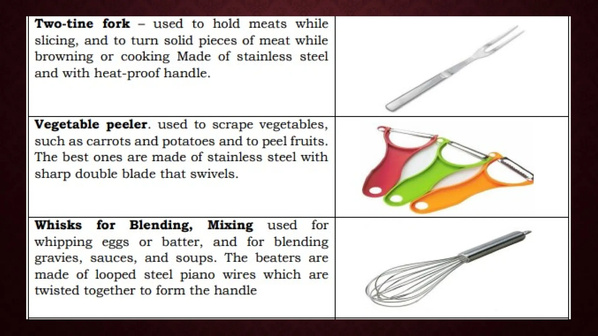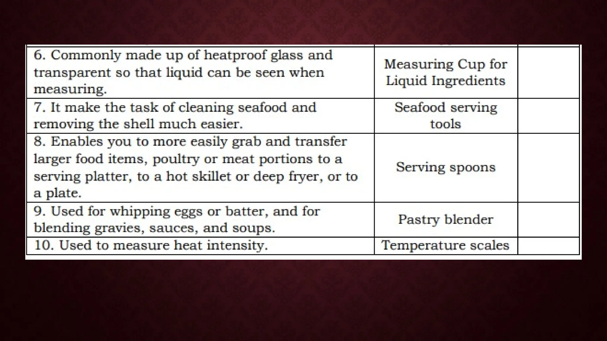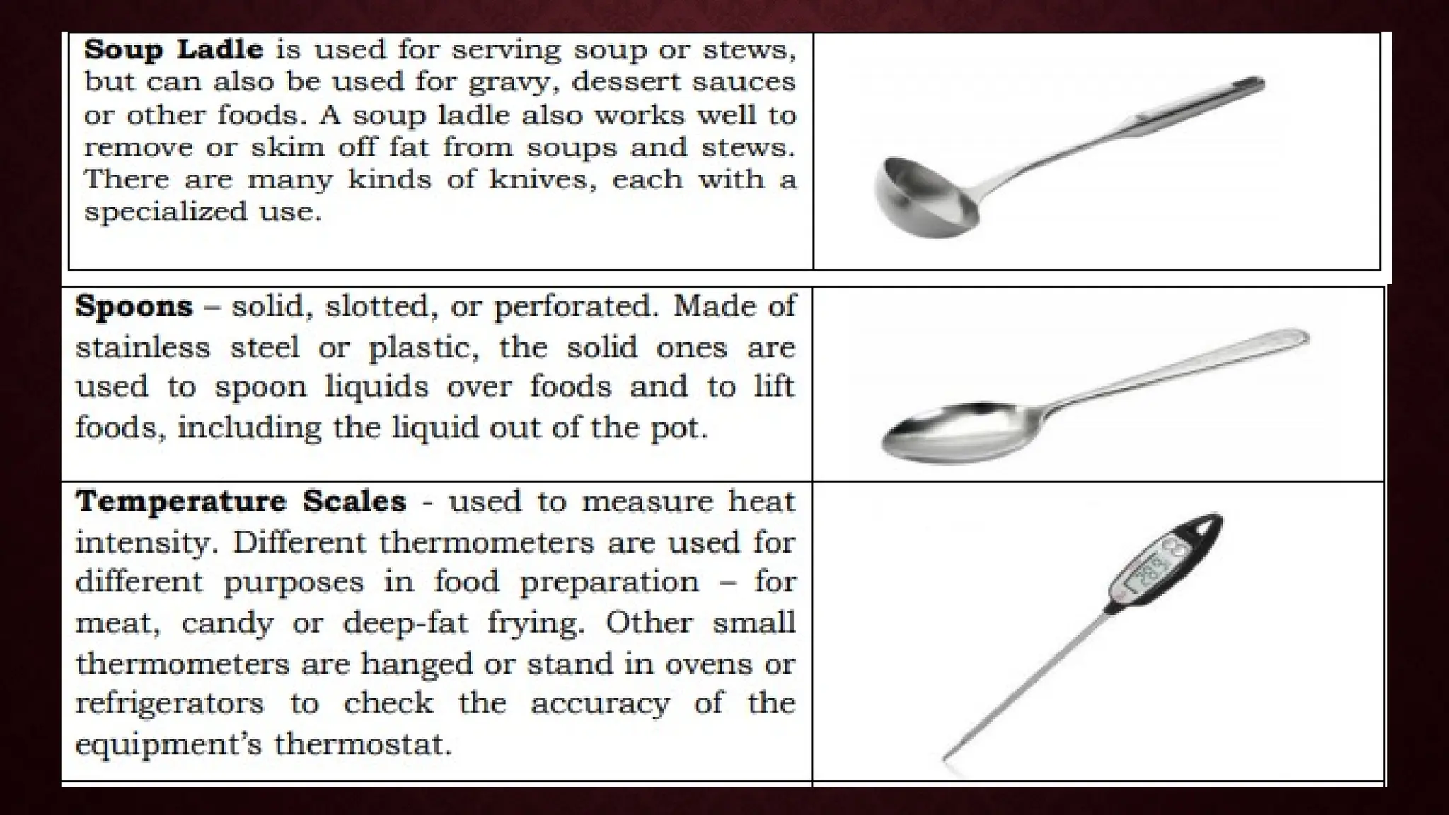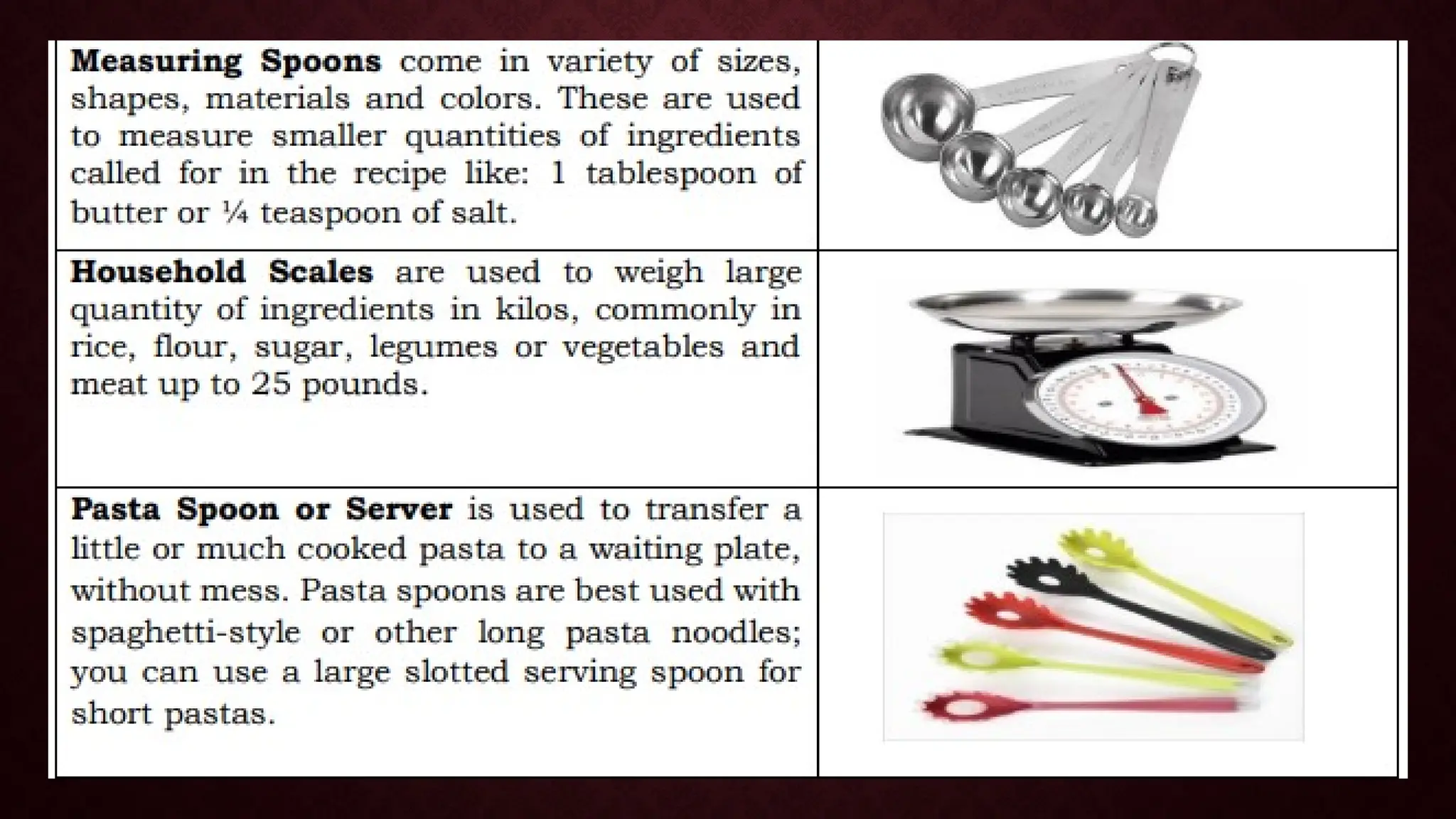 The document is a module for home economics education focusing on the use of kitchen tools, equipment, and cleaning paraphernalia. It covers identification, classification, and the importance of these items for cooking, emphasizing that proper tools can enhance cooking efficiency and meal quality. Additionally, the module includes various exercises and questions to reinforce learning about cooking techniques and safety in the kitchen.