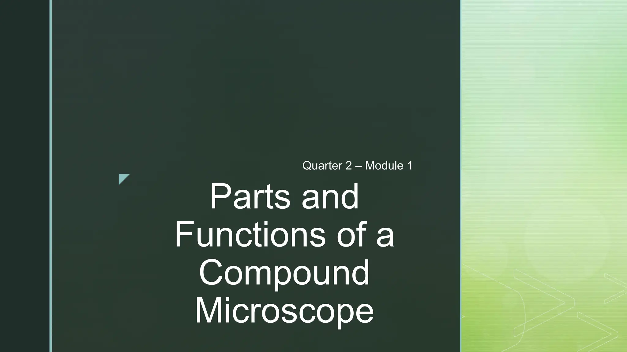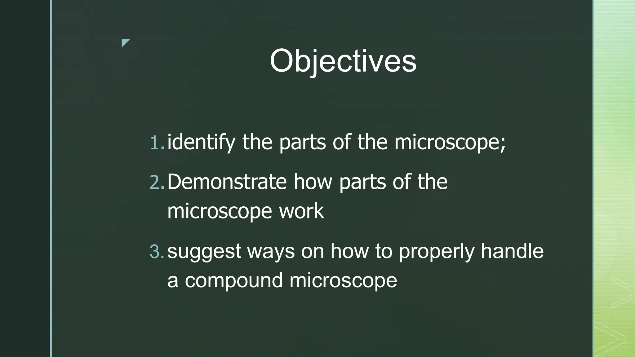 This document outlines the parts and functions of a compound microscope. It identifies the major external components, including the mirror, revolving nosepiece, objective lenses, body tube, eyepiece, stage, fine and coarse adjustment knobs, and diaphragm. The objectives are listed as low power, high power, and oil immersion objectives. The document also notes that students will identify these parts using a printed or illustrated microscope.