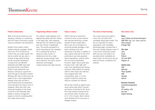 - Digital banking, payments, and data projects are driving demand. Uncertainty remains around Brexit and potential Greek exit from the EU.