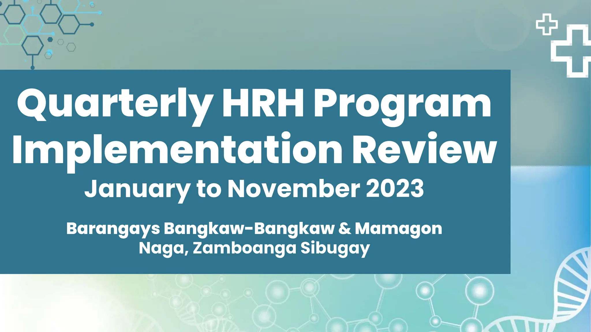 The document provides a review of quarterly HRH program implementation in Barangays Bangkaw-Bangkaw and Mamagon from January to November 2023, focusing on maternal and child health services. It details various health metrics including the number of pregnant women receiving vaccinations, nutritional supplements, and screenings for infectious diseases. Additionally, it outlines the range of health and wellness services offered, including immunization, family planning, and disease prevention programs.