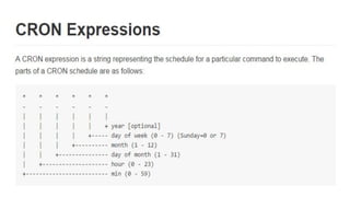 The document provides an overview of using the Quartz job scheduling library for Java applications, explaining key components such as jobs, triggers, and schedulers. It outlines the implementation process which includes downloading the Quartz library, creating a job class, defining triggers, and starting the scheduler. Additionally, it discusses different types of triggers, such as simple and cron triggers, and their functionalities.
