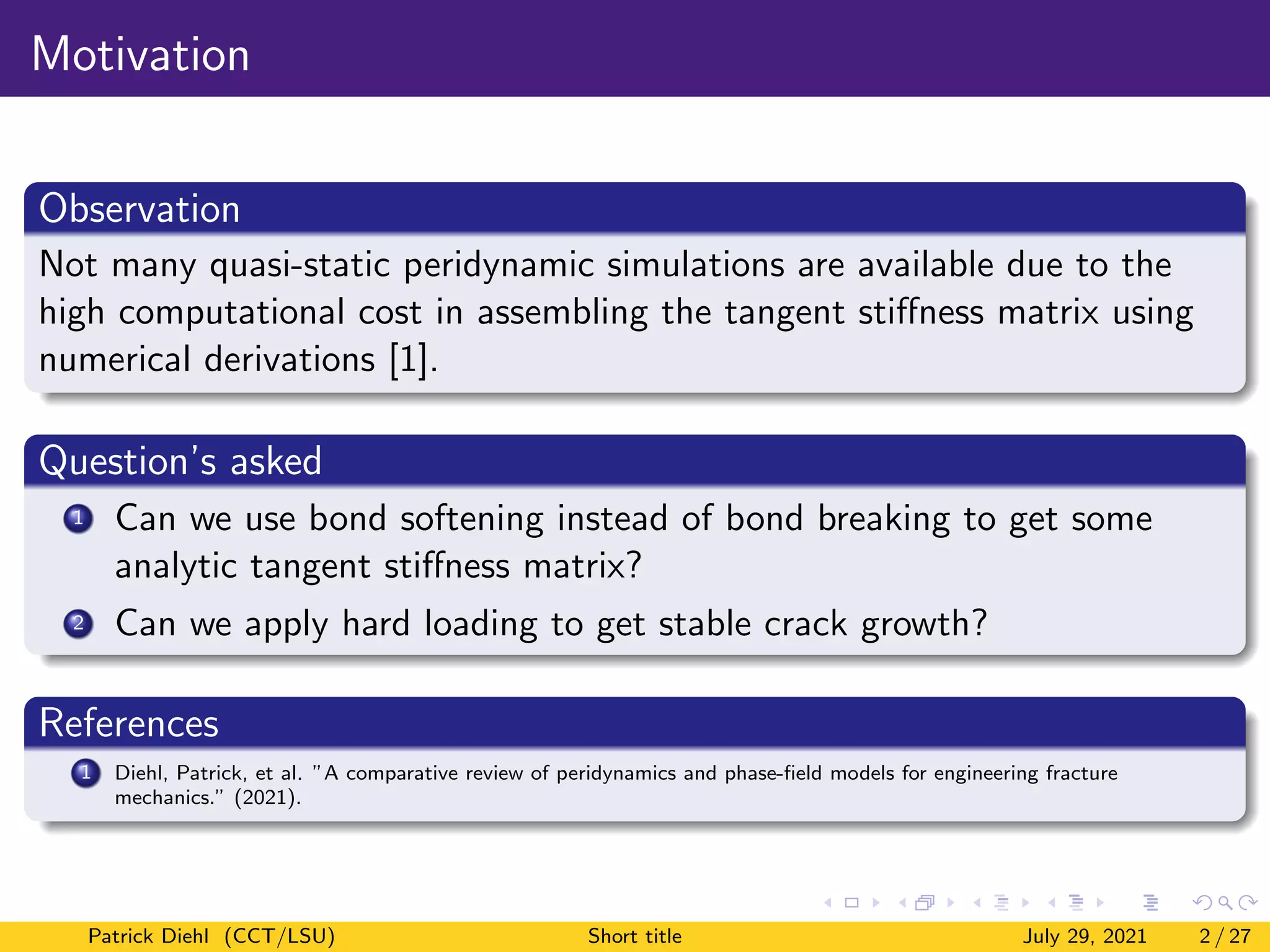 2) Two loading algorithms are presented - soft loading and hard loading. Soft loading uses bond softening while hard loading applies a prescribed displacement field.