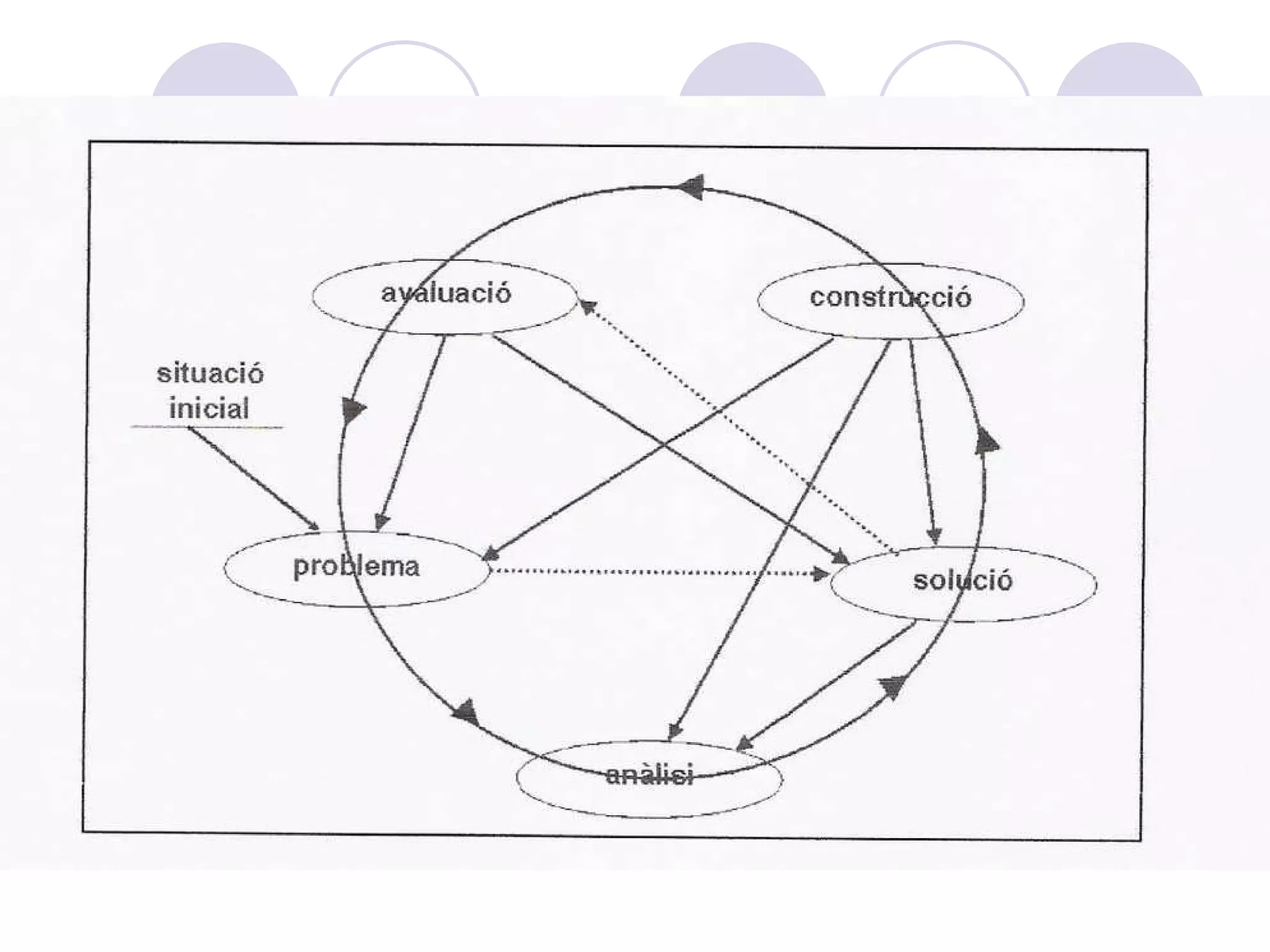 Treball per projectes: Procés que parteix d’un problema o necessitat que es planteja a l’alumne o que ell mateix defineix i que continua amb l’anàlisi de la situació, la recerca de solucions vàlides que donin resposta al problema i la construcció de la solució més vàlida de totes.