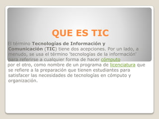 Comunicación (TIC) tiene dos acepciones. Por un lado, a