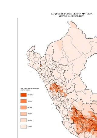 - Today, Quechua has official status in Peru, Bolivia, and Ecuador but remains primarily an oral language with lack of written materials. There is ongoing shift to Spanish in some communities.