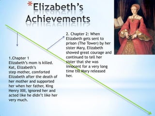 1) Elizabeth was imprisoned by her sister Mary but persisted in claiming her innocence until she was released.