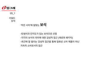 -최근에 잘 팔리는 감성적 접근을 통해 일회성 소비 제품이 아닌