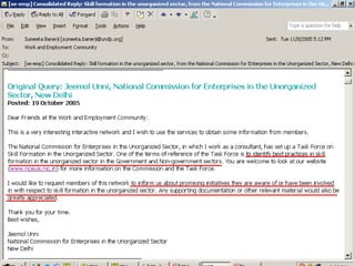 The document provides guidance on how to frame a good query for a solution exchange community. It discusses including context about the query poster's work, clearly stating the issue being faced, specifically asking a question, and providing a signature. It also covers types of queries like seeking experiences, examples, referrals, or advice. Tips are given for drafting queries that will appeal to members and generate useful responses, such as focusing on real problems and avoiding ambiguity.