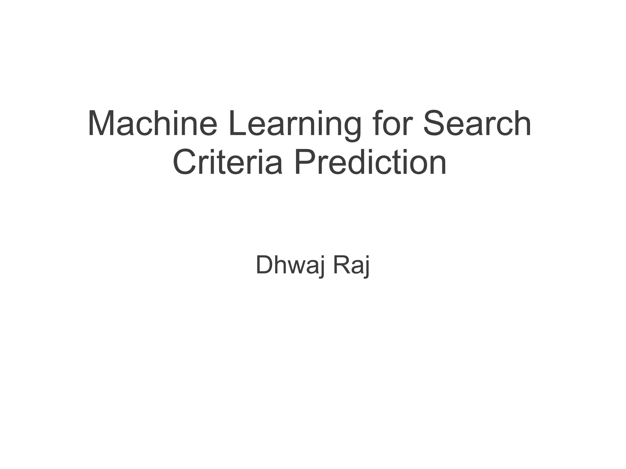 This document discusses using machine learning to predict a user's future search queries based on their search history. It proposes building a query flow graph using conditional probabilities calculated from historical query chains. This graph would be stored efficiently and queried to provide query recommendations. Testing on real estate search log data achieved 67-79% accuracy in predicting a user's next search criteria. The technique could benefit applications like query suggestions, page re-ordering, and ad placement.
