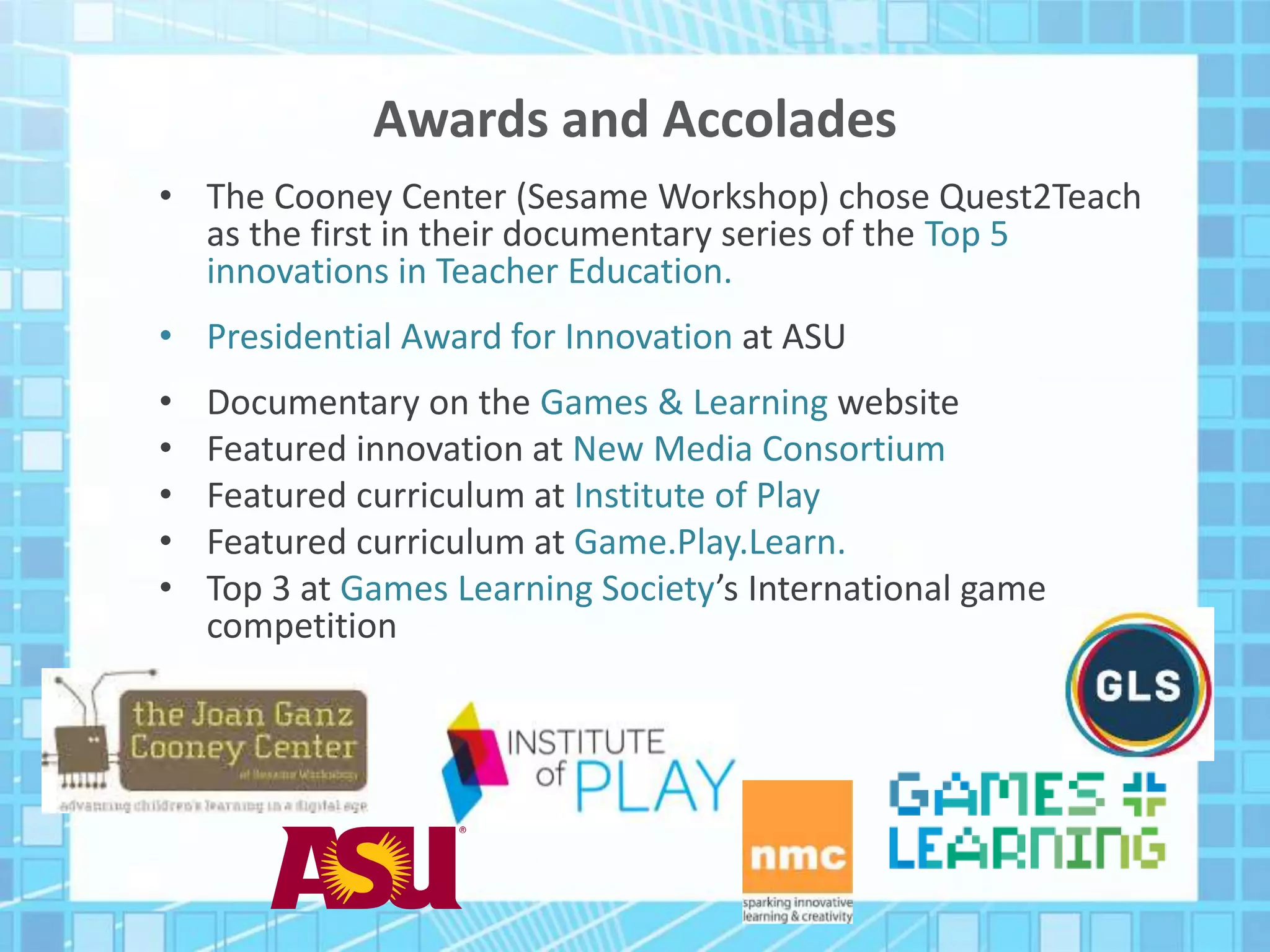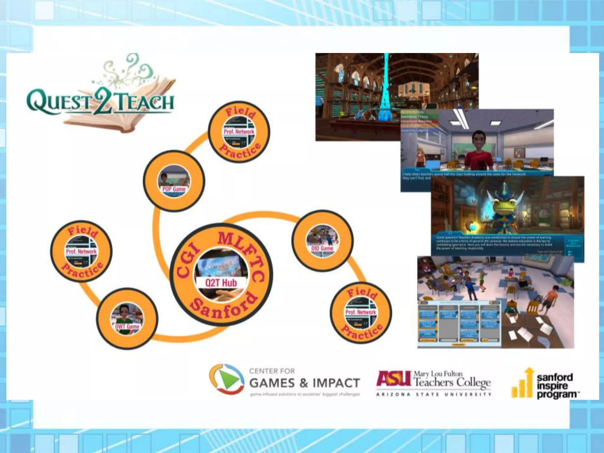 Quest2Teach is an innovative teacher education program utilizing 3D video game simulations to connect educational theory with practical classroom experience. Through role-playing and problem-solving, students enhance their professional identity and teaching skills while receiving immediate feedback and support in a safe learning environment. Research indicates significant improvements in student engagement, confidence, and the ability to handle real-world teaching challenges.