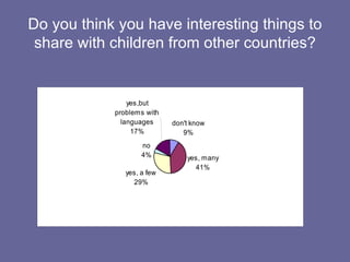 This document discusses the Comenius program, which connects students from different countries. It asks questions about the reader's interests in foreign cultures and languages and their thoughts on what they could learn from interacting with international students, such as skills and topics they could improve through participation in the program. The document prompts the reader to reflect on their strengths, weaknesses, interests and goals in relation to joining the Comenius project.