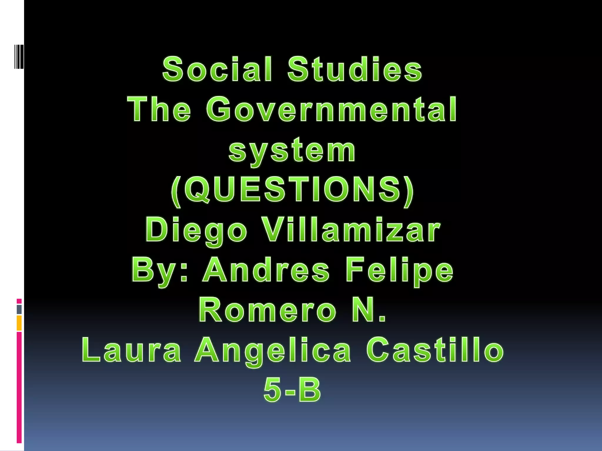 The document contains 20 questions about Colombia's governmental system and constitutional history. It asks about topics like the country's constitutions, slavery, states of siege, presidential requirements, the functions of congress and the supreme court, constitutional amendments, the national front coalition, and mayoral elections. The questions probe different aspects of Colombia's government and how its constitution has changed over time.