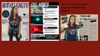 The document summarizes how the media product uses and challenges conventions of real magazines. It describes replicating conventions like the masthead, dominant image, and essential information from inspiration magazines. However, it also challenges conventions by including more sub-images on the double page spread to make it more appealing, using swearing in the article title to appeal to teens, and not including an editor's note on the contents page to focus on content. The summary highlights how the media product borrows from real magazines but also adapts conventions for its target audience.
