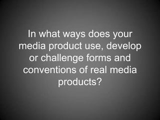 By using some conventions but challenging others, the product creates a unique selling point to attract a niche audience interested in experiencing new approaches.