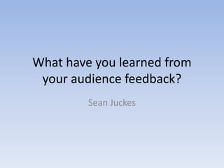 The document provides feedback from test audiences on a documentary, radio trail, and double page spread created by Sean Juckes. Key points learned from the feedback include: