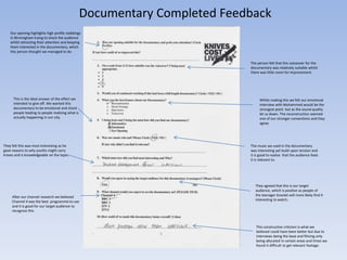 - The documentary's emotional interviews and realistic reconstruction were strengths, while sound quality and only interviewing one student were weaknesses.