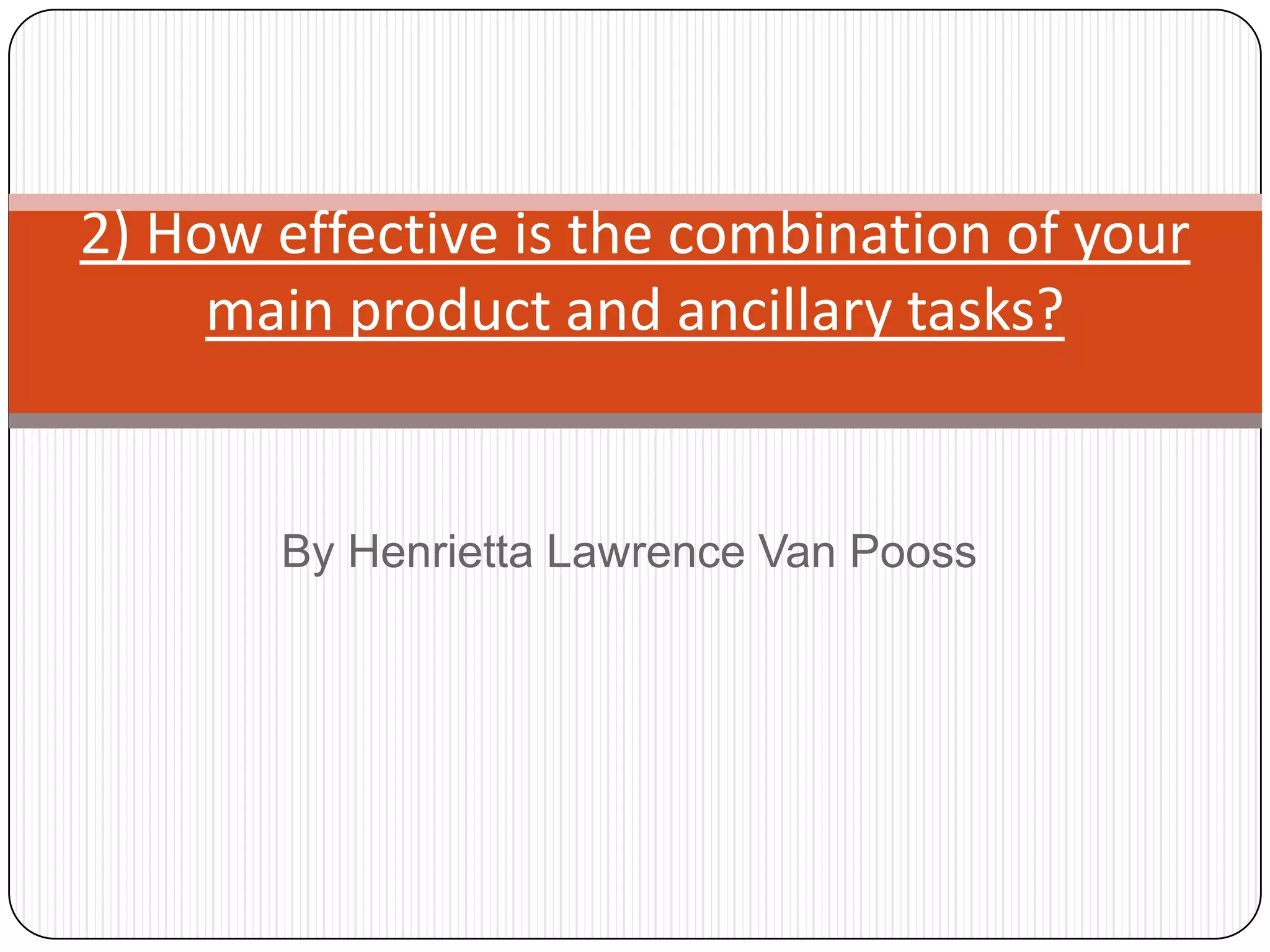 The author found that the main product and ancillary tasks of their first year were better combined than those of the second year. In the second year, the individual products met the brief but did not link together as strongly. Areas like layout, pictures, and basic design suffered from a lack of creativity in the second year compared to the more thorough research done in the first year. The author created a TV website that was a hybrid of existing sites like 4oD and Sky Atlantic to make it relatable yet unique. The listings page and website worked better together than with the advertisement due to similar layouts, text, and color schemes, whereas the advertisement used a different house style and was meant to be eye-catching.