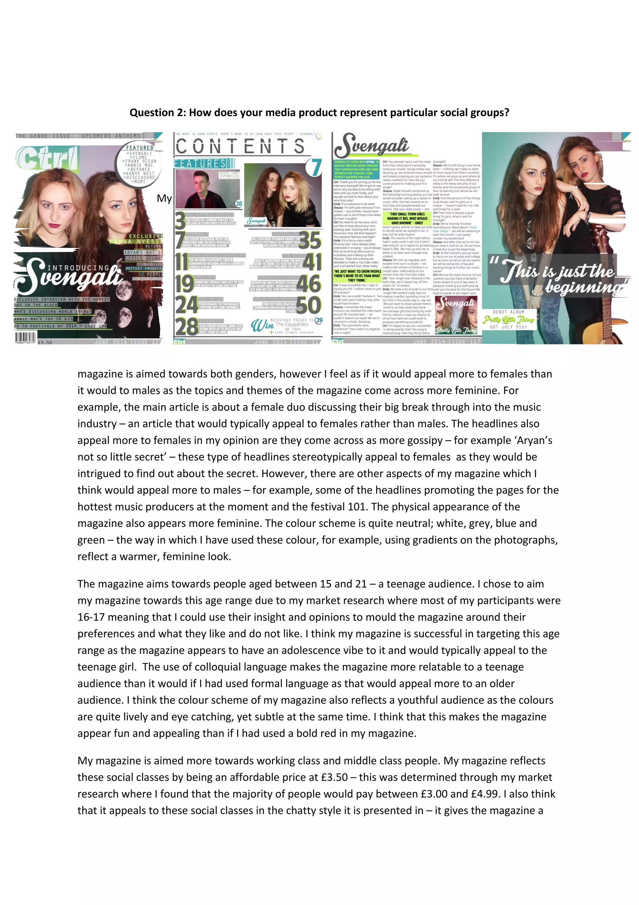 The document summarizes how the media product, a magazine, represents different social groups. It aims to represent: