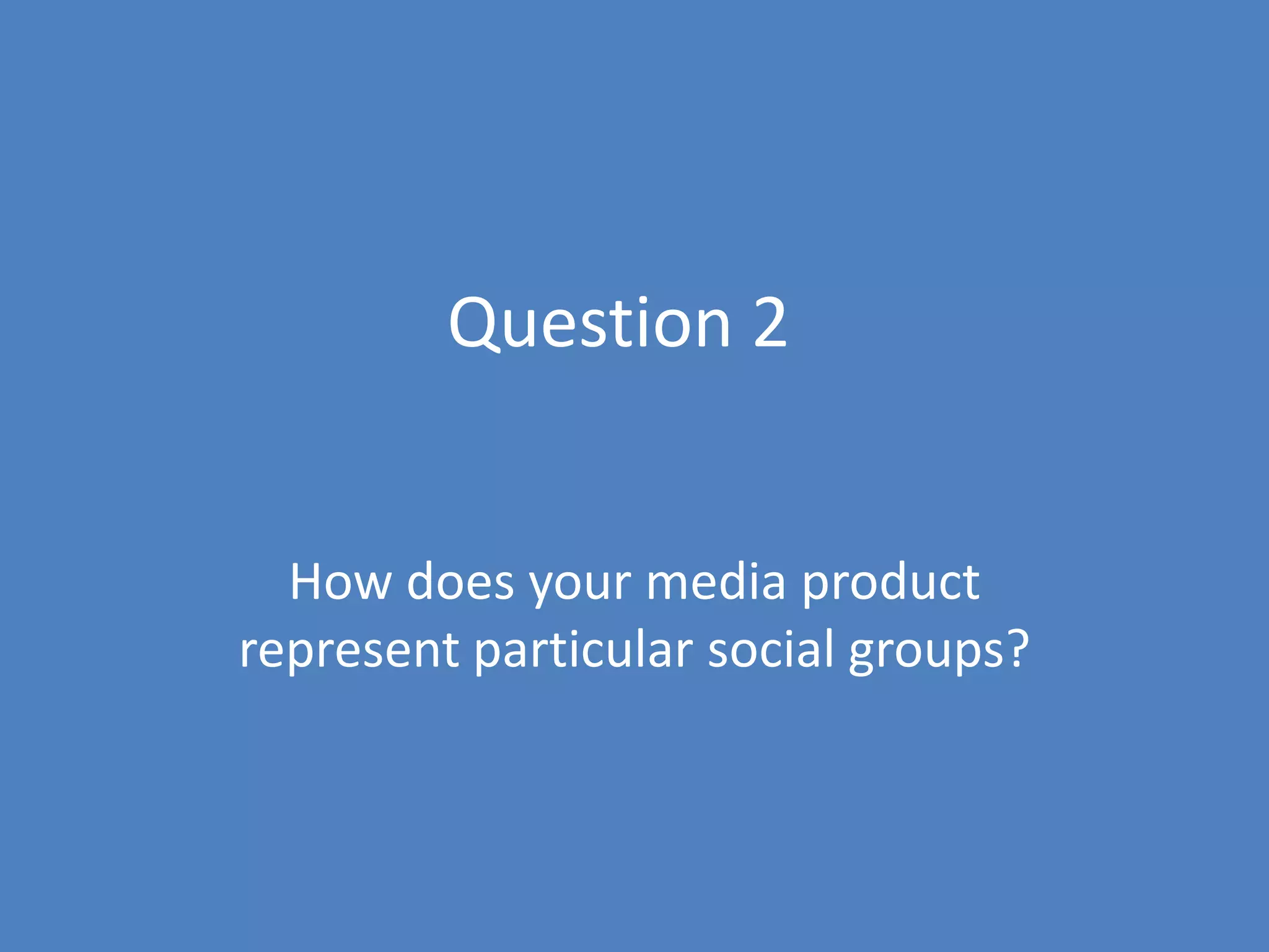 The media product represents youths and females in particular ways. It portrays British teenagers as successful rather than disruptive, and shows females as more dominant in the music industry than males. This suggests teenagers are not all unsuccessful and women can do well in rock music. The dress, location, colors and fonts represent rock music values. Some social groups are absent, including the elderly, disabled and upper classes, as they are not typically associated with the rock genre and their inclusion may lose the target audience's interest. The absent groups indicates they are not viewed as important in society or even considered.