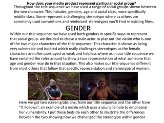 - Social class: The protagonist is portrayed as working class through a casual, subtle costume to engage the majority working class audience.
