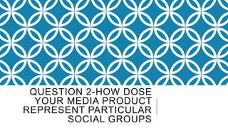 This document discusses how the media product represents particular social groups through the styling of artists in the magazine. Research was conducted into the target audience, which fits into the "Leading Edge Tribe" that combines influences to create their own individual style. The artists were styled to look fashionable yet relatable by mixing statement pieces like cardigans with more mainstream items. Casual but polished outfits featuring brands like Adidas represent the social group's interest in being on-trend while expressing individuality. The artists' ages of 16-17 make the magazine realistic for its audience.