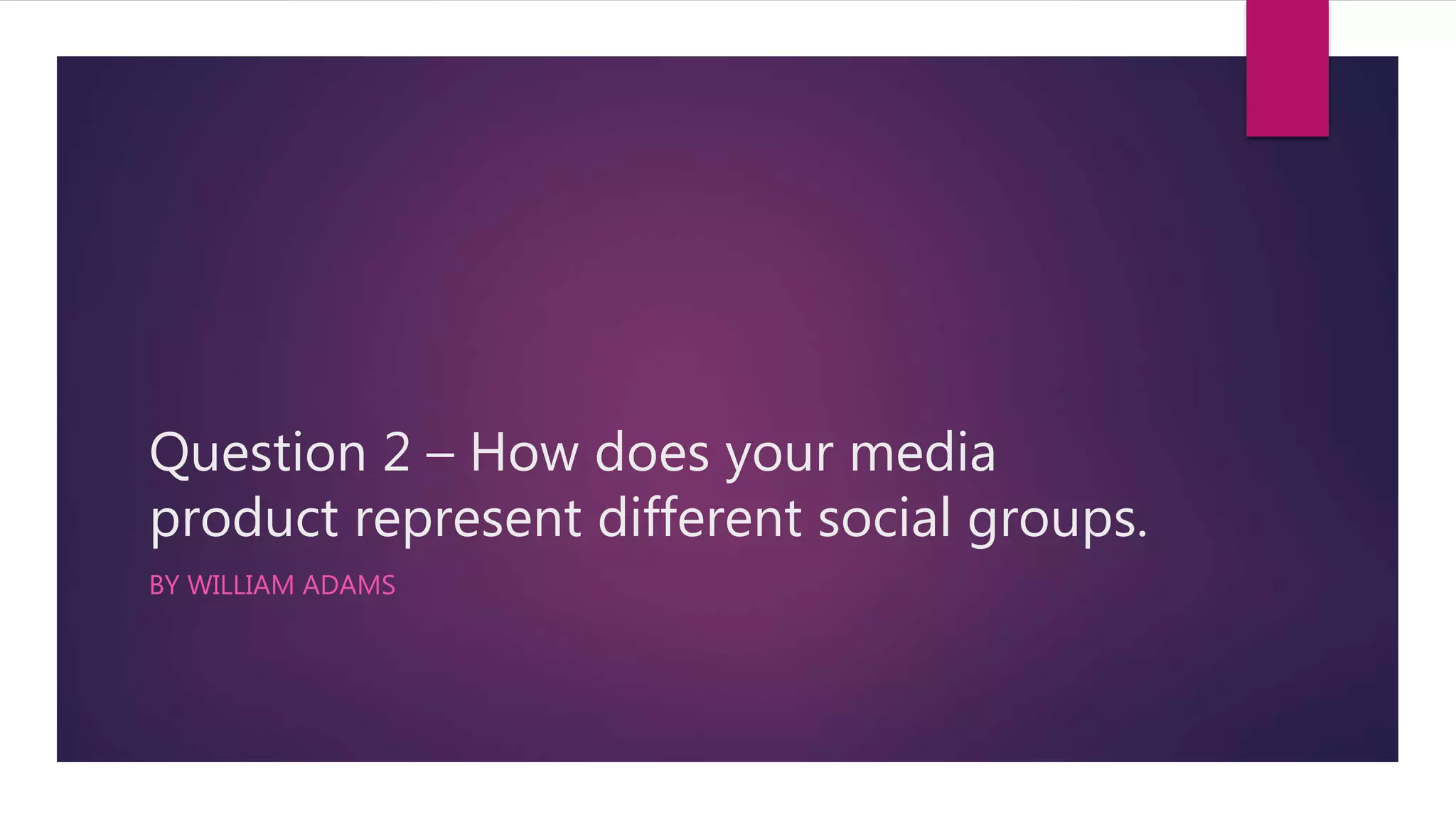 William Adams represents his target social groups in a film project in several ways. He uses young adult actors to portray intelligent, focused characters that his young adult audience can relate to. The costumes help establish hierarchies between the characters and their roles. The main character, dressed more sophisticatedly, serves as a role model for the audience with his determination to solve mysteries. By having a young protagonist in a position of respect, the film challenges crime thriller conventions of featuring jaded older protagonists and presents a more positive vision that young people can aspire to.