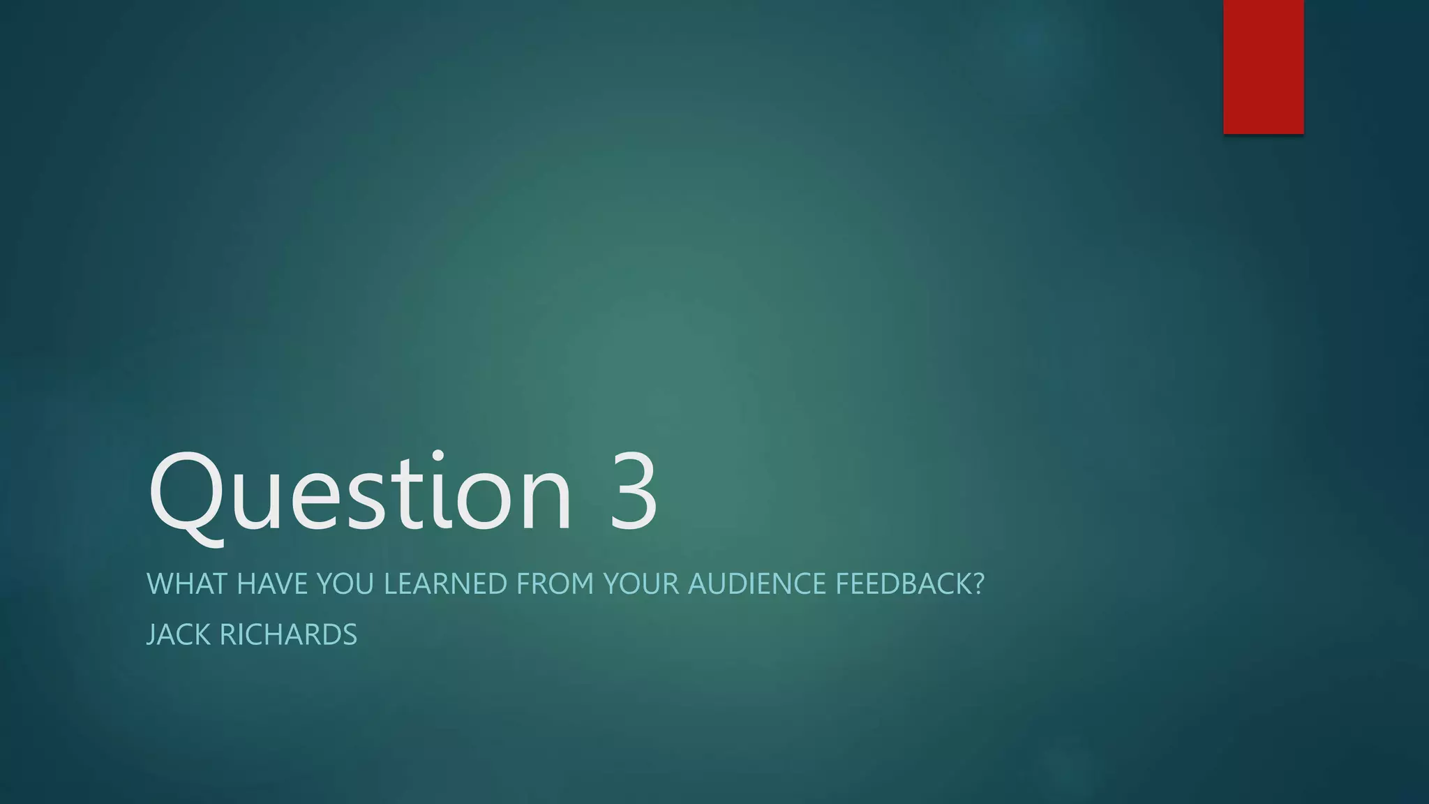The feedback from the audience questionnaires was useful for making decisions about the music video. Most people liked the two locations used in the video as they represented loneliness well. However, some felt the park location could have been better without houses and a playground in the background. While many liked the costume as typical indie wear, others would have preferred something different. Most agreed the video had a narrative about loneliness, though some felt it lacked variety in shots. Suggested changes included improving locations, adding more shots, and changing the ending.