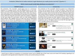 1) ODEON mainly shows thrillers and films with a 15+ age rating that would appeal to the film's target teenage audience.