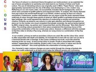 The document discusses the use of colour, lighting, location, and camera angles in a music video project. It describes how vibrant colours were used to represent urban youth culture. Specific lighting was used to highlight the artist's face during a close-up shot of lip syncing. The location of Camden, London was chosen to depict the urban environment through shots of graffiti and public transportation. Various camera angles, such as extreme close-ups and shots from behind, were employed to focus attention on the artist and lyrics or create a sense of intimacy and voyeurism.