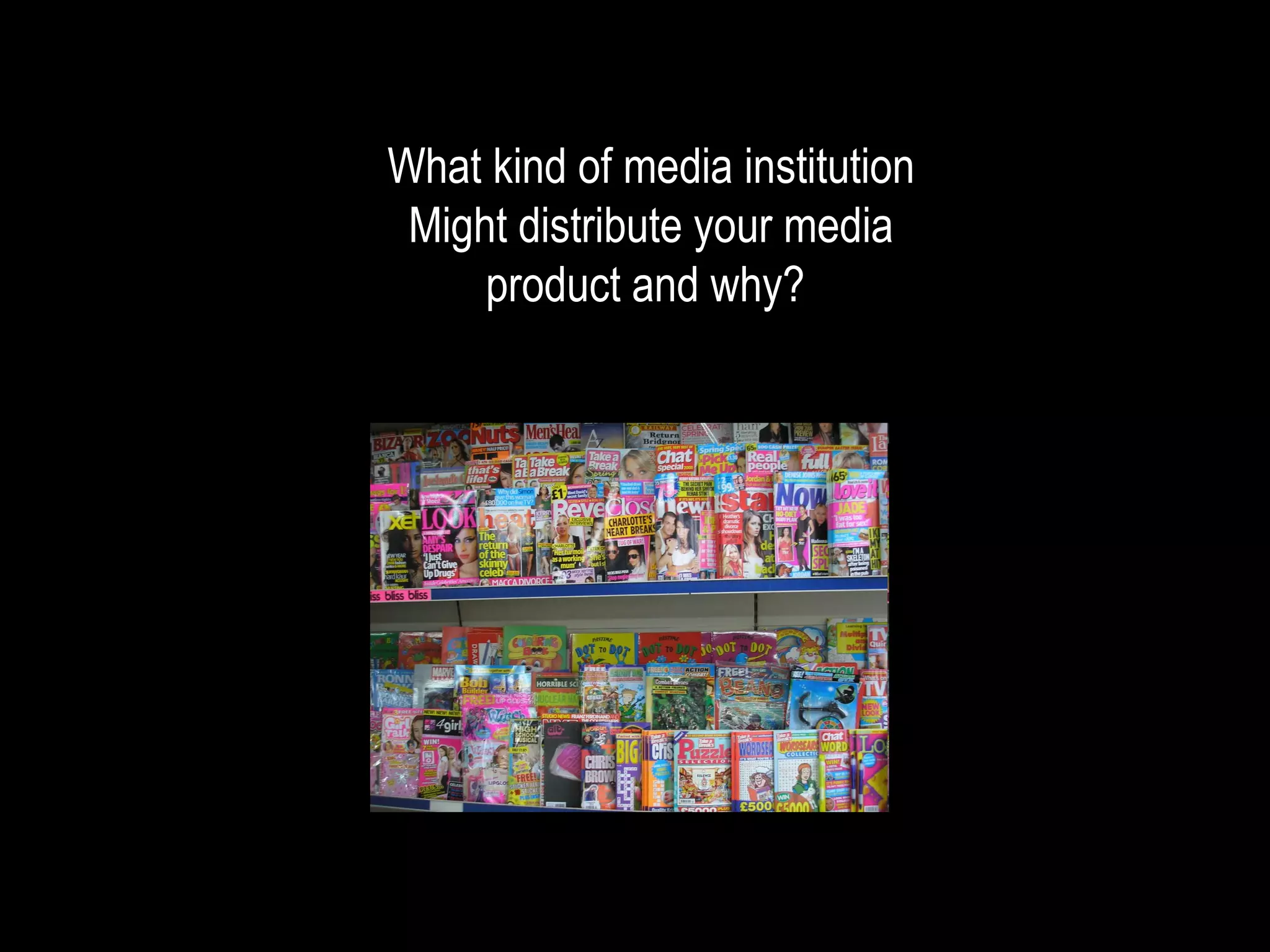 My magazine would be distributed through various traditional and online outlets to engage its target audience of music fans. It would be sold in newsagents, petrol stations, supermarkets, and HMV stores. It would also have an online presence, allowing audiences to subscribe on its website. The magazine would seek feedback from readers and have them vote on popular artists. It would be advertised on music channels like Flava and KISS to promote articles and artists relevant to the genres of music shown on those stations.