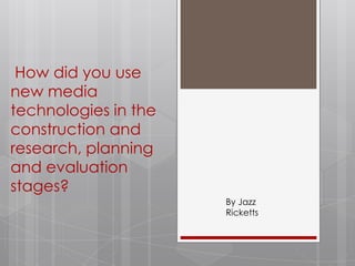 How did you use new media technologies in the construction and research, planning and evaluation stages?By Jazz Ricketts